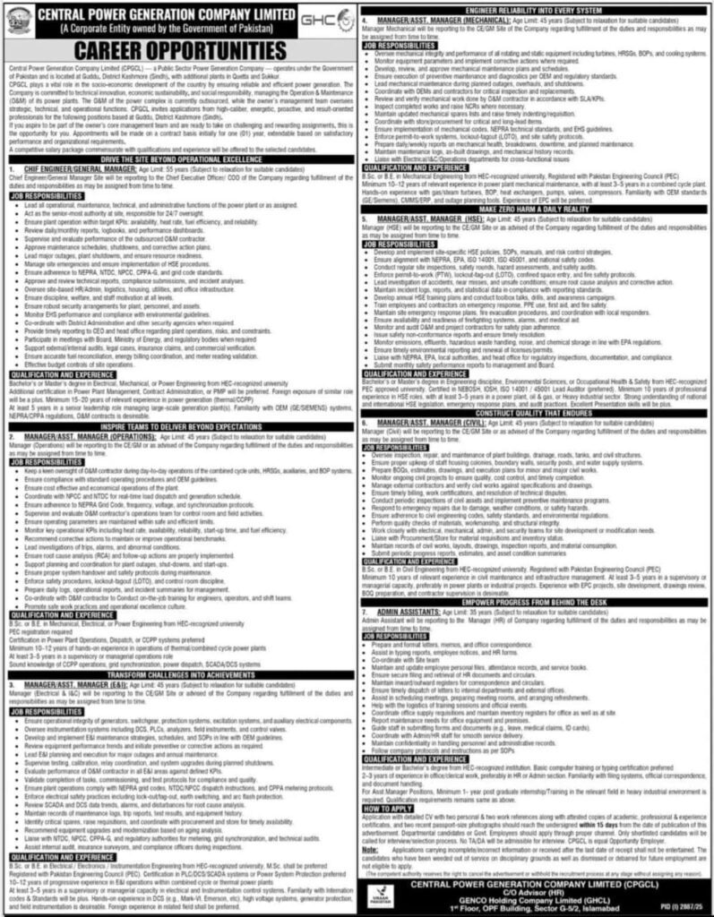 Operating under the Government of Pakistan, CPGCL is a key public-sector enterprise responsible for thermal power generation, ensuring reliable electricity supply across the nation. This is your chance to become part of Pakistan’s energy backbone — where innovation meets responsibility and careers turn into long-term success stories.