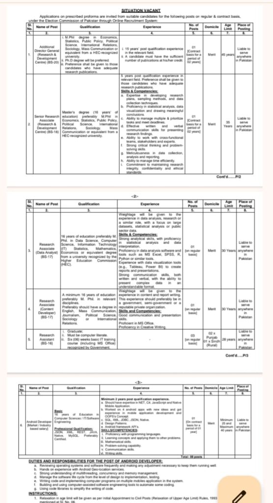 - Master’s degree (16 years of education), preferably M.Phil in Economics, Statistics, Public Policy, Political Science, International Relations, Sociology, or Mass Communication from an HEC-recognized university.