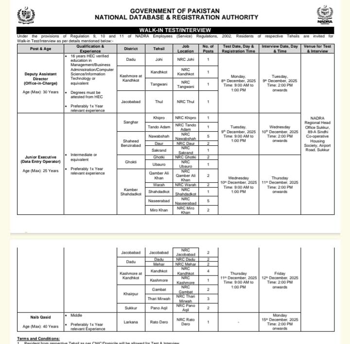 Joining NADRA in 2025 means stepping into a career that values growth, stability, and excellence. Don’t miss this opportunity to become a part of NADRA Read the complete details below to ensure you meet the requirements and apply before the deadline.