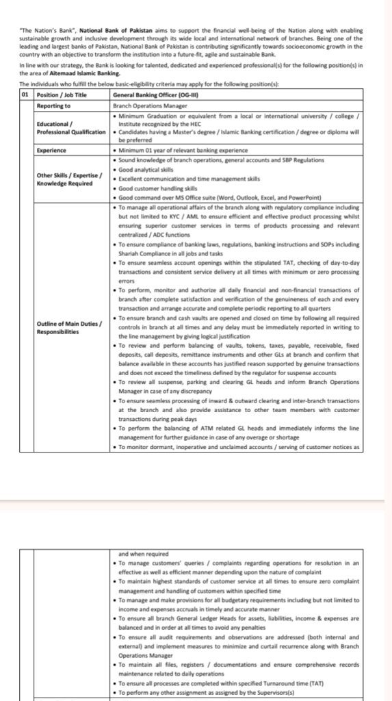 - Visit the website and select National Bank of Pakistan – General Banking Officer job listing.