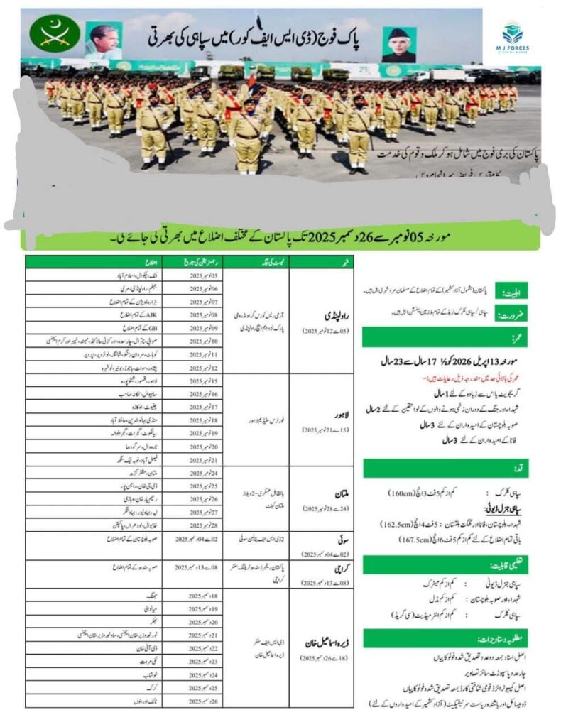 The Pakistan Army has officially announced the latest recruitment for DSF (Defence Security Force) Soldier Jobs 2025. This is an excellent opportunity for patriotic and dedicated individuals who want to serve the country by joining one of the most respected institutions of Pakistan.