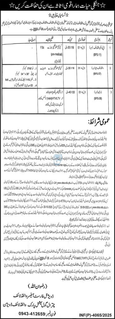 Are you seeking an excellent career opportunity in the government sector in 2025? The Wildlife Division, Chitral Gol National Park, Chitral has announced the latest job openings for the year 2025, providing exciting roles for job seekers across Pakistan. Whether you’re male or female and meet the eligibility criteria, Wildlife Division, Chitral Gol National Park, Chitral department offers you the chance to secure a stable and rewarding job.